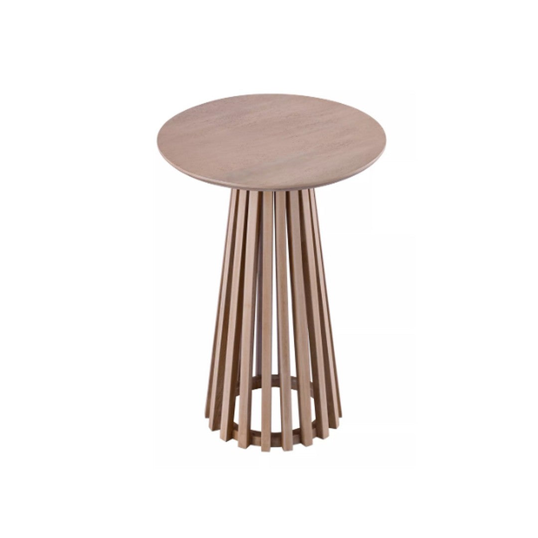 The Lenan Mango Side Table captivates with a compelling design, showcasing a mesmerizing arrangement of gently sloping wood slats that bring both texture and visual intrigue to the forefront. Its sleek oak finish elevates its contemporary aesthetic, establishing Lenan as a chic and attention-grabbing centerpiece that effortlessly enhances your living area.