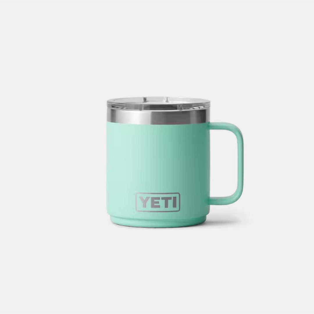 The Rambler® 10 oz Mug MS brings rugged performance to a compact profile. Crafted from 18/8 stainless steel and featuring double-wall vacuum insulation, it keeps drinks hot (or cold) from the first sip to the last.