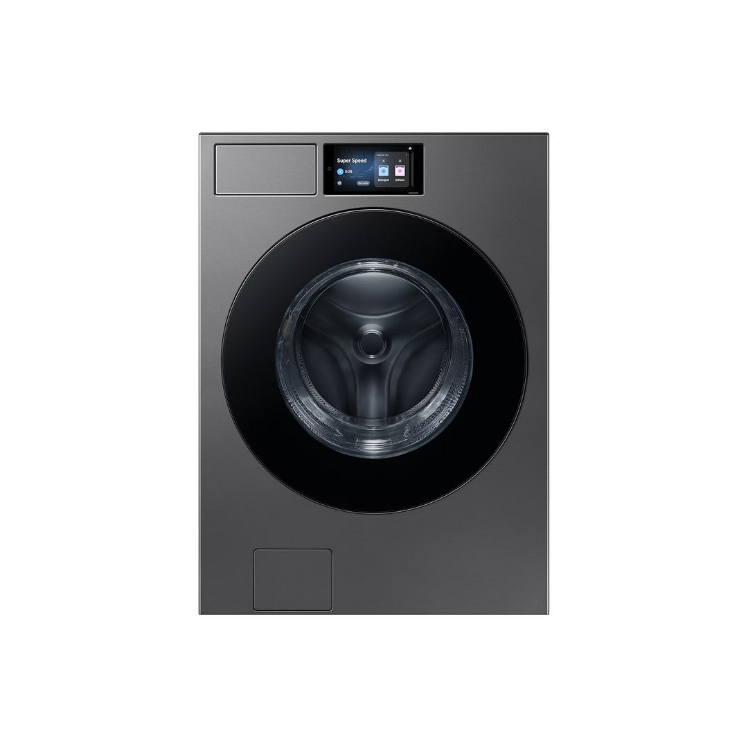 The Samsung WF90F53ADSA5 6.1 cu. ft. Bespoke AI front-load washer features AI OptiWash+, a 7" AI Home touchscreen, and Wi-Fi SmartThings connectivity. Its ultra-large capacity, AI Bubble cleaning, Flex Auto Dispense, and Super Speed cycle provide smart, efficient, and powerful washing for modern households.