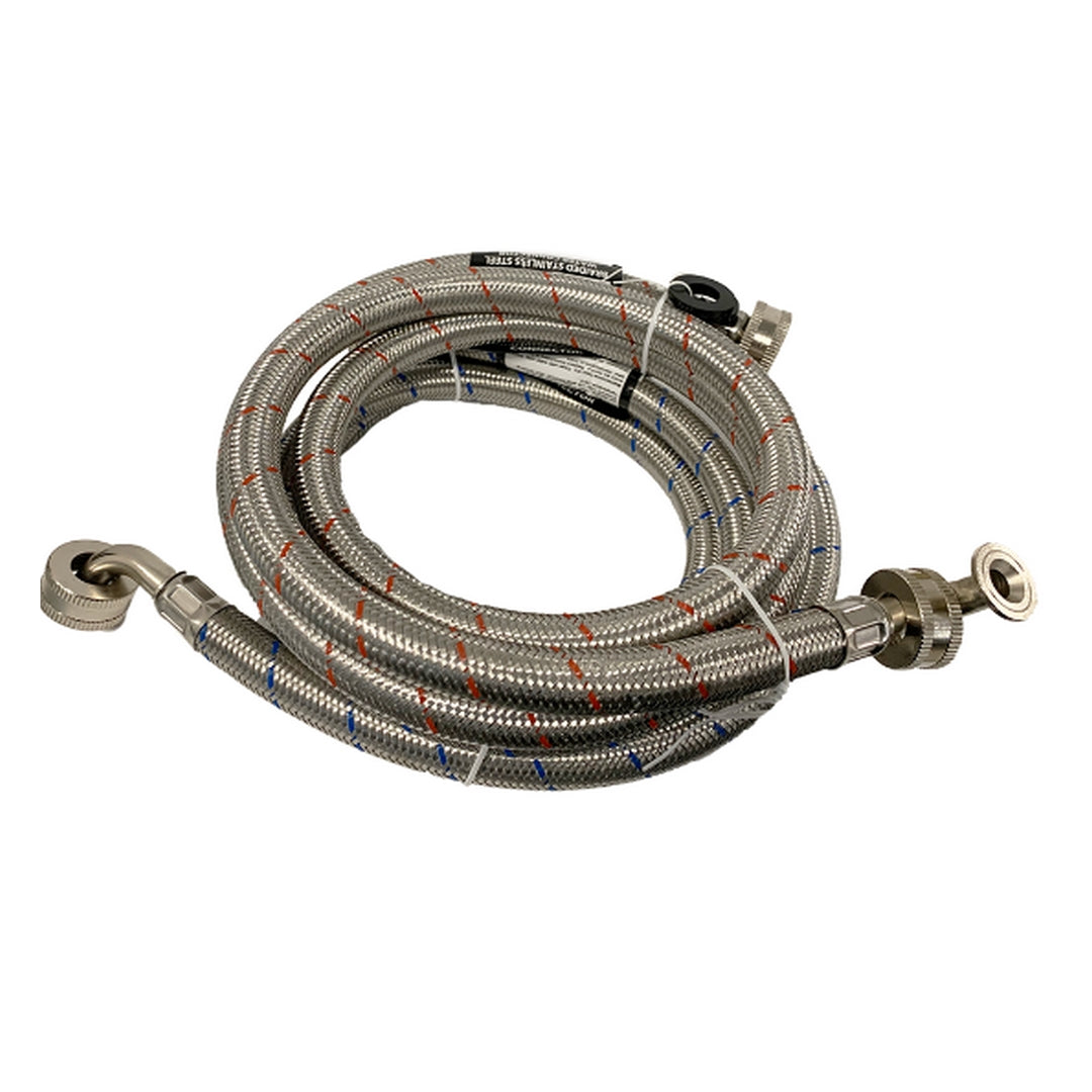| Feature 4 | 3/4” Female to female hose connections – featuring 90º goose neck end, 60-in length, wide 8.4mm diameter nickel plated fittings that fit all washers allowing them to fill faster |