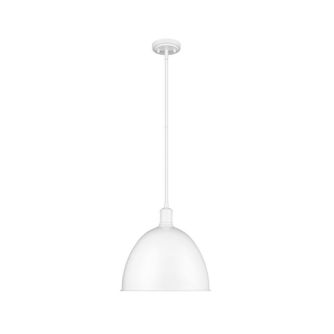 Give a gourmet kitchen a casual luxe look with this transitional modern farmhouse pendant. Designed with a minimalist, crisp satin white finish across a bell-like iron shade, this single light pendant lends a restoration style flair, reminiscent of schoolhouse or industrial lighting fixtures. Suspend this sleek urban-inspired pendant over an island, providing ample light for prepping and baking or simply creating a more inviting communal area for the family to gather. Store model, undamaged but used.